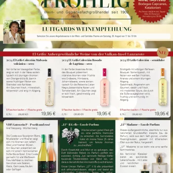 Als Weinfachberaterin und Sommelière (IHK) präsentiert Ihnen Luitgard Fröhlig nebst einer großen Auswahl an internationalen Weinen auch eigene Weinkreationen, welche Sie in unserer Therme probieren dürfen. Erfahren Sie auf unserer Webseite mehr über Weine & Spezialitäten im Hause Fröhlig.