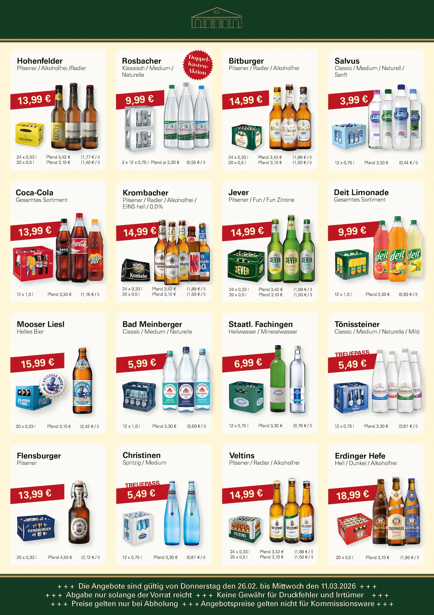 In der Wein- und Getränke-Therme Fröhlig finden Sie regelmäßig ausgewählte Angebote für jeden Anlass. Ob für den Alltag, das Wochenende mit der Familie oder die nächste Feier – wir bieten Ihnen eine vielfältige Auswahl an Bieren, Weinen, alkoholfreien Getränken und Spirituosen zu attraktiven Preisen.