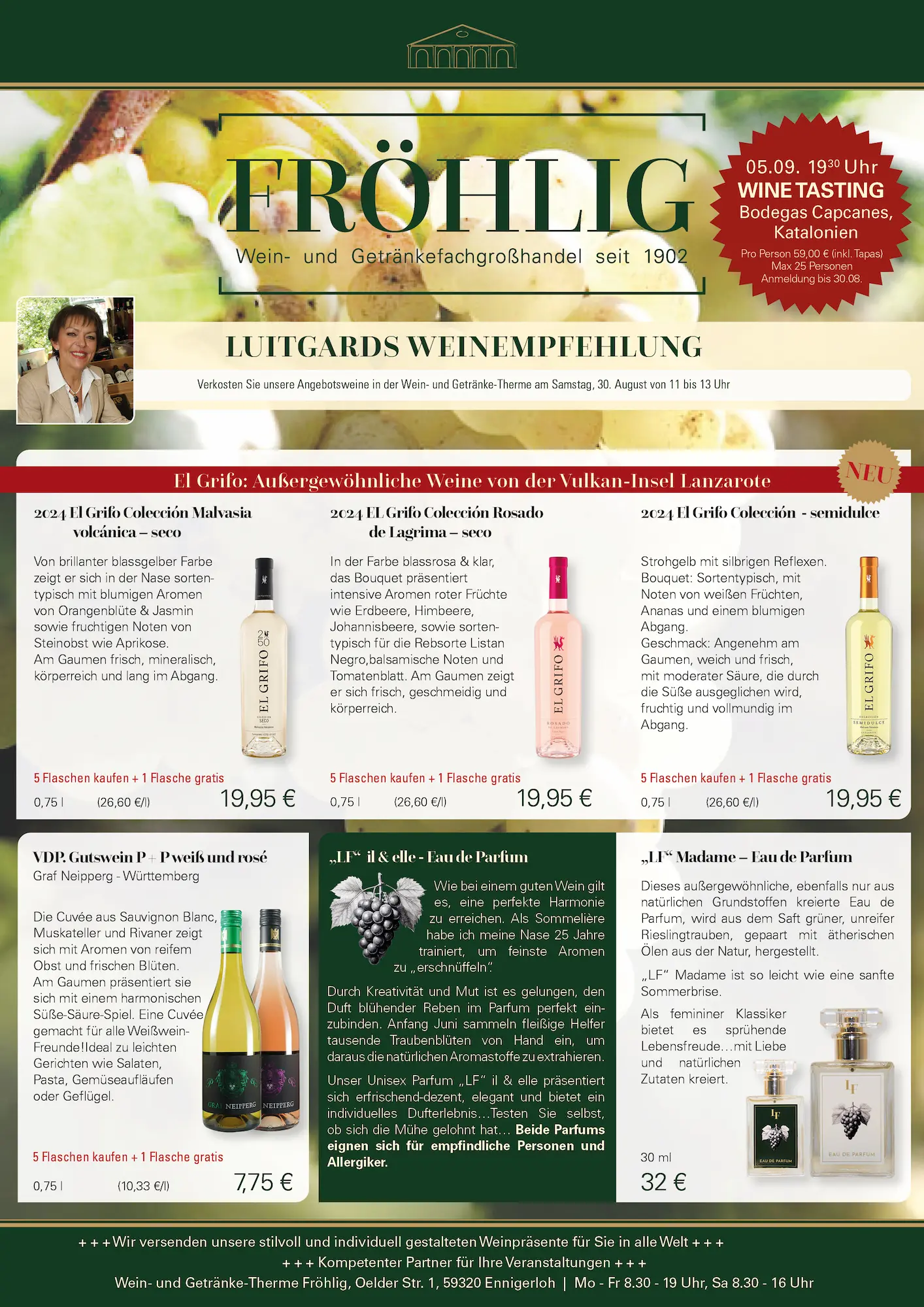 Der aktuelle Flyer der Wein- und Getränke-Therme Fröhlig ist online.